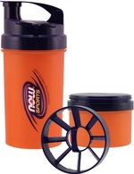 NOW Sports BPA-free plastic shakers have a removable bottom cup to hold protein powders or other drink mixes, as well as two smaller compartments in the cap for supplements or other pills. These attractive purple-and-orange bottles hold up to 25 fluid ounces, and come with a handy built-in screen to help eliminate clumping for a silky-smooth mixture with minimum effort.