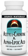 Source Naturals Acetyl L-Carnitine & Alpha-Lipoic Acid contains two critical nutrients, acetyl L-carnitine and alpha-lipoic acid, to support your vital metabolic functions. These compounds support the body's own system for the maintenance of cell function as we age.*