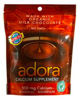 Adora Calcium® now made with organic chocolate will change the way you think about calcium supplements. Adora Calcium is made with rich, decadent chocolate from Rainforest Alliance Certified™ cocoa and produced by a chocolate company that's been in business since 1879. The flavor is rich and creamy with just a hint of sweetness. Adora will make you Crave Your Calcium®