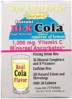 Ingredients: Vitamin C, Vitamin B-1 (thiamin hcl), Vitamin B-2 (riboflavin), Special Niacin Complexes, Vitamin B6 (pyridoxine hcl), Folic Acid, Vitamin B-12 (cyanocobalamin), Pantothenic Acid, Calcium, Magnesium, Zinc, Sodium Potassium, Manganese, Chromium (ascorbate-aspartate) Additional Ingredients: All Nutrients In A Base Of: Ascorbic, Citric, Tartaric, Aspartic, and Malic (apple) Acids, Bilberry, Quercetin, Folic Acid, Natural Flavoring, Sweetened with Fructose Does Not Contain: Caffeine. Contains: Lemon, Vitamin C…1000mg, Minereal Ascorbates