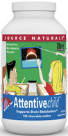 Studies have shown that very active children may have special dietary needs. Source Naturals Attentive Child™ is designed to support the multiple systems that affect your child's brain metabolism-and kids love the sweet and tart taste! DMAE, a substance normally found in the brain, may be used by the body to make choline, which in turn may be used to make acetylcholine. Magnesium is necessary for numerous metabolic processes and also plays a role in neuromuscular transmission and activity. L-Aspartate, an amino acid, acts as a neurotransmitter. Our grape seed extract provides procyanidins, which have powerful antioxidant activity, and phosphatidylserine is a vital component of cell membranes, including those in the brain. Sharp-PS® is a registered trademark of IFF or its affiliates.*
