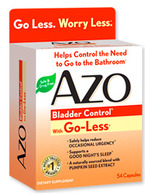 Frustrated with how often you feel the urge to go to the bathroom? Tired of waking up in the middle of the night? There’s a better way. AZO Bladder Control® with Go-Less® is a safe, drug-free supplement that helps reduce the urge and supports bladder function around the clock.* This naturally-sourced blend will help you go less and worry less both day and night.*