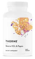 Indigestion can be caused by many things – including inadequate amounts of hydrochloric acid (HCl) in the stomach. HCl secretion in the stomach does several positive things. It assists protein digestion by activating pepsinogen to pepsin, it renders the stomach sterile against ingested pathogens, it inhibits undesirable overgrowth in the small intestine, and it encourages the flow of bile and pancreatic enzymes.* Hydrochloric acid also facilitates the absorption of a number of nutrients, including folate, vitamin B12, ascorbic acid, beta-carotene, iron, and some forms of calcium, magnesium, and zinc.* Numerous studies have shown that hydrochloric acid secretion in the stomach begins to decline with advancing age. Overuse of antacids or acid blockers can also lead to low levels of hydrochloric acid in the stomach, which can result in poor protein digestion.* Thorne's Betaine HCl & Pepsin comes from a porcine source.