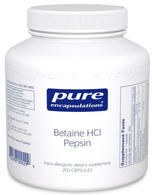 Betaine HCl and pepsin are gastric-juice components essential to the digestion of food and absorption of most nutrients. In particular, betaine HCl is necessary for adequate absorption of protein, calcium, vitamin B12 and iron. The low pH of the stomach's hydrochloric acid destroys ingested bacteria and microorganisms. This formula can be beneficial for anyone seeking enhanced digestive function.*