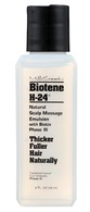 The third and final step in our complete hair treatment program! Vigorously massage this concentrated biotin blend into your hair after shampooing and conditioning, and reap the rewards of a head of hair that’s full of body and feels and looks great! Biotene H-24 is a complete system of hair care especially designed to help hair look and feel thicker and healthier. These highly effective products contain the finest natural ingredients scientifically combined to give hair fullness, strength, body and shine. H-24 Emulsion provides a concentrated dose of biotin to your scalp along with vitamin B3 and amino acids to provide the nutrients needed for thicker fuller-looking hair when under continuous usage for 30 days. pH Balanced.