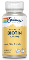 Solaray Timed-Release Biotin is a high-potency supplement containing 5,000 mcg (16,667% DV) of biotin in each 1-VegCap serving. Our two-stage, timed-release formulas are designed to release half of the biotin rapidly and the other half gradually over a period of up to 8 hours, which may help provide sustained support over a longer period of time. With consistent use, Solaray Timed-Release Biotin may help support healthier skin, fuller, shinier hair, and longer, stronger nails.