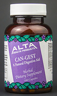 Can-Gest is a traditional blend of eight herbal extracts that have been presteeped for optimal assimilation. Together these herbs help nourish the digestive system and help maintain the eliminative system. Can-Gest is 100% free of harsh acidic substances or enzymes that can cause further irritation to a sensitive digestive system. This product has shown noticeable improvement from symptoms of heartburn, acid reflux, bloating, gas, constipation, and other digestive problems.