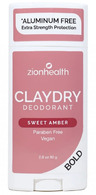 CLAYDRY Deodorant Stick Bold Sweet Amber is a natural deodorant made by Zion Health. It is formulated with clay minerals and essential oils to provide long-lasting odor protection. The sweet amber scent is appealing to many users.