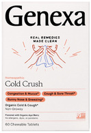 Genexa Cold Crush is a real remedy, made clean. This homeopathic remedy addresses symptoms of the common cold including congestion, mucus, cough, sore throat, runny nose, and sneezing*.