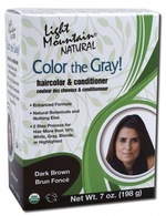 Color the Gray Natural Haircolor and Conditioner Dark Brown - Light Mountain Natural Color the Gray! hair color & conditioner Dark Brown couleur de cheveux et conditionneur Brun Fonce Enhanced Formula Natural Botanicals and Nothing Else 2 Step Process for Hair More than 10% White , Gray or Platinum Blonde Effective & Economical No Synthetic Chemicals Safe , Natural Hair Color Cruelty Free USDA Organic Net Wt. 7 oz. (198 g)