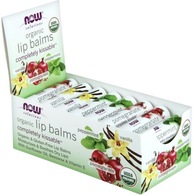 Assorted display for vanilla, peppermint and pomegranate lip balms.