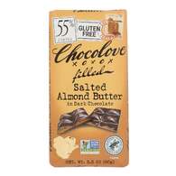 Description Premium Belgian dark chocolate with a creamy salted almond butter filling. 55 percent cocoa content. Cocoa from Rainforest Alliance Certified farms is grown in ways that benefit farm families, wildlife and the environment. Non-GMO. Made in Boulder, CO with Belgian chocolate. Ingredients DARK CHOCOLATE (COCOA LIQUOR (RAINFOREST ALLIANCE CERTIFIED, FIND OUT MORE AT RA,ORG,), SUGAR, COCOA BUTTER (RAINFOREST ALLIANCE CERTIFIED, FIND OUT MORE AT RA,ORG,), SOY LECITHIN AND/OR SUNFLOWER LECITHIN, VANILLA), ALMOND BUTTER (DRY ROASTED UNBLANCHED ALMONDS), MILK CHOCOLATE (SUGAR, COCOA BUTTER (RAINFOREST ALLIANCE CERTIFIED, FIND OUT MORE AT RA,ORG,), MILK, COCOA LIQUOR 9RAINFOREST ALLIANCE CERTIFIED, FIND OUT MORE AT RA,ORG,), SOY LECITHIN AND/OR SUNFLOWER LECITHIN, VANILLA), ORGANIC PALM FRUIT OIL, ORGANIC BUTTER OIL, SEA SALT, SUNFLOWER LECITHIN. CONTAINS ALMONDS, MILK, SOY. MADE IN A FACILITY THAT ALSO PROCESSES EGGS, PEANUTS, AND OTHER TREE NUTS.