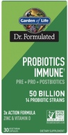 This is a powerful triple-action formula for those looking to support their immune system and digestive health.† Dr. Formulated Probiotics Immune† is special since it not only contains 50 Billion CFU of diverse strains per serving, but also provides a prebiotic blend to promote the growth of good bacteria—super important to support a healthy microbiome.† Dr. Formulated Probiotics Immune† contains an exclusive postbiotic blend to support Bifidobacteria growth also the good stuff. For additional immune support, there’s vitamin D3 plus zinc.† All of this means that you get powerful triple-action daily support for immune system and digestive health—all in one, easy-to-swallow capsule per day!†