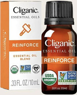 Keep your well-being intact with Cliganic Reinforce, featuring USDA Organic Certified frankincense, tea tree, rosemary, lemon, orange and eucalyptus essential oils, our proprietary blend offers invigorating benefits. Featuring an earthy, herbal aroma, this 100% pure blend may be diffused or applied topically with a carrier oil for protective and fortifying benefits.