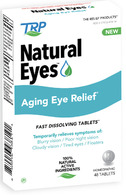Natural Eyes™ Aging Eye Relief® is a homeopathic tablet formulated to support corneal and macular eye health in adults1. Aging Eye Relief® temporarily alleviates age-related symptoms including eye floaters, blurry or cloudy vision, poor night vision, and ocular fatigue2. Aging Eye Relief® uses 100% natural active ingredients that are for daily use.