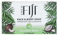 This Coconut Oil Infused Soap is made with raw, organic coconut oil and our light, revitalizing Cucumber Melon fusion – created from pure botanicals known to soothe dry or damaged skin and reset your skin’s natural pH balance. A truly natural soap that offers you deep cleansing, hydration and holistic healing. You’ve never experienced long-lasting, rich and creamy lather like this! As well as purifying pores, you can even shave and shampoo with this thick and regenerating foam. Handcrafted using an ancient Fijian recipe, this face and body soap is vegan, cruelty-free and biodegradable, making it safe for people and the planet.