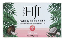 This Coconut Oil Infused Soap is made with raw, organic coconut oil and our heady, floral Tuberose essential oil, known to stimulate circulation and positive outlook. A truly natural soap that offers you deep cleansing, hydration and holistic healing. You’ve never experienced long-lasting, rich and creamy lather like this! As well as purifying pores, you can even shave and shampoo with this thick and regenerating foam. Handcrafted using an ancient Fijian recipe, this face and body soap is vegan, cruelty-free and biodegradable, making it safe for people and the planet.