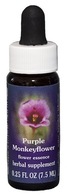 According to the maker of the product, Flower Essence Services, the Purple Monkeyflower essence helps individuals overcome fear and anxiety, especially when related to social interactions or expressing one's true self. It is believed to promote courage, self-acceptance, and emotional balance.