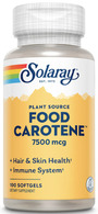 Committed to crafting supplements that just work better, Solaray Plant Source Food Carotene provides 25,000 IU of vitamin A as 100% natural beta carotene from algae per 1-softgel serving. Additionally, we include a powerful carotenoid complex of annatto oil, carrot concentrate, lemon grass, spirulina, and yam. Together, the ingredients in our Food Carotene formula are designed to help support normal, healthy skin and eyes, antioxidant activity, and immune system function.