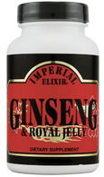 Imperial Elixir Ginseng and Royal Jelly is a convenient, easily digested capsule. Imperial Elixir has combined high quality Chinese Red Panax ginseng roots with its long-term stamina benefits with fresh Royal Jelly - rich in amino acids, B-vitamins (particularly B5) and enzymes - known for its ability to provide quick energy. Imperial Elixir carefully selects mature, six-year old Panax roots from the world's premier ginseng growing region along the China/North Korean border. Their roots, known for their wholistic benefits, potency and strength, are meticulously processed and then combined with fresh, freeze-dried Royal Jelly - one of nature's most concentrated and beneficial nutritional substances, and honey. This results in an amazingly refreshing and effective nutritional supplement that boosts energy and stamina.