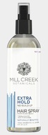 Mill Creek Hair Spray Extra Hold offers a long-lasting strong hold with body and bounce. Keratin, Jojoba and Panthenol make the difference for superior performance from this non-drying formula that's neither stiff nor sticky. Our exclusive blend rinses clean with every shampoo leaving no hair dulling build-up.
