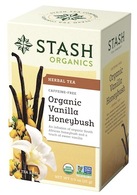 Stash Organic Vanilla Honeybush is an herbal infusion that is low in tannins and contains no caffeine. This unique drink is tasty and aromatic. It brews up a warm reddish-brown color and is full-bodied and slightly spicy with a sweet aftertaste. It's a great drink hot or iced, with or without milk and sweetener.