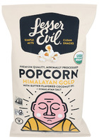 Lesser Evil Buddha Bowl Himalayan Gold Butter Flavored Coconut Oil Organic Popcorn uses a nutritious plant-based alternative for a great buttery taste.