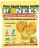 HONEES honey filled drops plus the powerful combination of lemon, menthol and eucalyptus. Each bag contains 20 individually wrapped drops, net weight 3.5 oz.