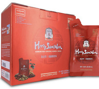 JungKwanJang Hong Sam Won is a Korean Red Ginseng beverage blended with cinnamon, ginger, and Jujube fruit extract. This caffeine-free drink is designed to revitalize and awaken your body and mind. A delicious tonic that sustains your energy throughout the day, it's ideal for individuals seeking a harmonious blend of energy and wellness benefits!