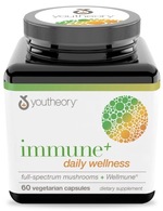 Youtheory® Immune+ Daily Wellness combines six organic mushroom extracts with a unique strain of baker’s yeast to support a healthy immune system.* This daily wellness formula primes immune cells to support and maintain the body’s natural protective responses.*