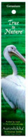 Geranium The bright, uplifting fragrance of geranium conveys the feeling of spiritual happiness. It is calming and has a cheering effect in the garden. Auroshikha adds the essential oil of bergamot to a geranium oil base to create this incense. Geranium is particularly useful for bringing a touch of "sun-shine" to the mid-winter blues. This incense can be lit along with Sandalwood to create a lingering atmosphere of springtime warmth.