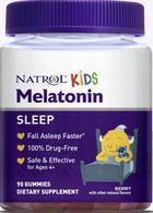 Soothe your child to sleep with Natrol® Kids Melatonin 1mg Gummies. They help your child fall asleep faster.† These sleep aid supplements are made with clean ingredients: 100% drug free, no artificial flavors, no artificial sweeteners, no synthetic dyes, non-GMO, vegetarian and gelatin-free. Safe and effective for ages 4 and up.