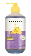 Alaffia's nurturing lemon lavender shampoo & body wash, prepared with Ethically Traded unrefined shea butter, virgin coconut oil, calming lemon balm, protective neem leaf and soothing lavender, nourishes and softens hair and skin. Gentle and non-irritating for EveryDay clean fun.