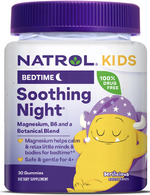 Natrol® Kids Soothing Night® Sleep Gummies helps calm and relax little minds and bodies for bedtime.†^* These sleep aid supplement gummies do not contain melatonin, are made with magnesium, B6 and a botanical blend that includes chamomile, lavender and lemon balm. This 100% drug-free and melatonin-free supplement is safe for kids ages 4+.