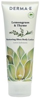 DERMA E’s Lemongrass & Thyme Restoring Shea Body Lotion nourishes and energizes the skin’s natural moisture barrier. Delightfully scented with a natural fragrance oil blend including natural Lemongrass and Thyme.