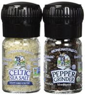 A healthy new twist on a classic pairing... Celtic Sea Salts' gourmet Light Grey Celtic® has been paired up with whole organic peppercorns. This twin salt and pepper glass grinder set works great on any table in the home or restaurant. Both are refillable!