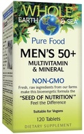 The Pure Food Men’s 50+ Multivitamin & Mineral contains vitamin and mineral complexes important for men over 50, including calcium and magnesium, vitamins D3 and K2, folate and other B vitamins in their active forms, selenium, vitamin C, and saw palmetto extract. Enzymes, antioxidants, and other phytonutrients are also included for energy and vitality, making this vegan-friendly formula ideal for older men looking for an organic, raw-food-based multi.