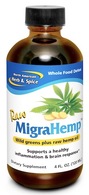 MigraHemp is the world’s first, complete whole food support for migraine health every produced. It is powered by raw hemp extract emulsified in raw, wild greens extracts plus ginger, basil, and wild oregano, all of which have been used over the centuries for migraine support. Use it when you need it, a spoonful at a time and also on a daily basis, a few drops, as prevention. The wild, raw greens and boost gut health, always imbalanced in this condition.