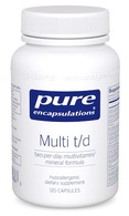 Multi t/d is a two-per-day multivitamin and mineral complex. Multi t/d offers essential nutrients that may reduce the risk of vascular disease when taken with a well-balanced diet low in saturated fat, cholesterol, folic acid and vitamin B.†‡