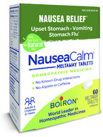 There’s a better way to soothe an upset stomach. NauseaCalm by Boiron relieves nausea and vomiting from everyday causes, including stomach flu, using plant-based and other pure active ingredients.* It also works for motion sickness nausea.* Convenient and easy for the whole family to take, the meltaway tablets dissolve in the mouth without food or water for relief anywhere, anytime.