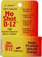 No Shot B-12: Sublingual Vitamin B-12 1000mcg. Under the Tongue. Instant Absorption. Less than 1/2 calorie per tablet. No-Shot B-12 helps in the formation & regeneration of red blood cells. Necessary for carbohydrate, fat & protein metabolism. Helps maintain a healthy nervous system. Promotes growth in children. Increases energy, needed for calcium absorption.
