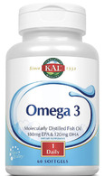 KAL Omega 3 Fish Oil comes from cold water fish. KAL® fish oils go through a purity process, including molecular distillation, to remove heavy metals, PCBs, dioxins, furans and other contaminants to meet superior fish oil standards. Each softgel contains 180 mg EPA & 120 mg DHA with natural Vitamin E to preserve freshness.