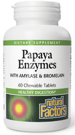 Chewable Papaya Enzymes tablets are a delicious source of beneficial enzymes for supporting digestion.* Papain and bromelain act to break down proteins into various amino acids. Amylase breaks down carbohydrates. Amla (gooseberry) supports enzymatic activity.* Natural supplementation is an excellent way to replenish enzymes that are lost in foods during cooking and processing