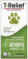 T-Relief Pet Arthritis attacks arthritis pain with Arnica plus additional plant based, mineral and tissue active ingredients. By attacking pain with 13 different natural pain relivers, pets get higher relief of more pain symptoms and because it is homeopathic, with none of the side effects of allopathic medicines.