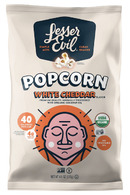 Sinful Taste Lesser Evil Clean Snacks. Organic Popcorn with Organic Coconut Oil. "No Cheese Cheesiness". Non-GMO Project Verified. Gluten-Free. Vegan. Kosher. 100% Air Popped.