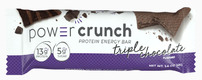 This delicious and iconic crème-filled chocolate wafer bar is packed with 13g of super protein featuring High-DH whey hydrolysates, only 5g of sugar, and NO sugar alcohols. Power Crunch Original Triple Chocolate protein bars are an ideal on-the-go snack to satisfy hunger in between meals, as a pre-workout or post-workout protein snack, or if you are simply craving something crunchy and sweet. Power Crunch Original Triple Chocolate Protein Bars nutrition facts panel with 13g protein