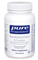 PureGenomics® B-Complex is designed to address the nutrient requirements of common genetic variations in the methylation pathway with a unique blend of B vitamins in highly researched and activated forms. Methylation is a key regulator of genetic expression and cellular function. Healthy methylation is vital for cellular health, DNA synthesis, hormone and neurotransmitter production, and energy metabolism. Optimal levels of B vitamins have been associated with cellular, cardiovascular, neurological and psychological health. B vitamins are essential to basal mitochondrial function as metabolic coenzymes, playing a key role in energy production and nutrient metabolism. Folate is offered in this formula as Metafolin® 5-methyltetrahydrofolate (5-MTHF), the universally metabolized and biologically active form of folate, providing support for individuals with genetic variations in the MTHFR gene. Vitamin B12 is offered as a combination of hydroxycobalamin and adenosylcobalamin. Hydroxycobalamin is a precursor form of vitamin B12 converted in the body to both methylcobalamin and adenosylcobalamin. Adenosylcobalamin is an activated form stored in the mitochondria of cellular tissues. It is a key cofactor in carbohydrate metabolism and healthy synthesis of neuronal myelin. Benfotiamine is a lipid-soluble, enhanced-retention thiamin derivative.‡