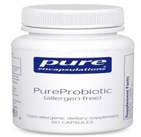 PureProbiotic™ (allergen-free) contains a blend of beneficial probiotic microorganisms derived from fermentation on a dairy-free, soy-free medium to ensure tolerability in individuals with food allergies or sensitivities. Each capsule provides 5 billion CFU per capsule of Lactobacillus acidophilus, Lactobacillus plantarum, Lactobacillus rhamnosus, Bifidobacterium bifidum, Bifidobacterium lactis and Bifidobacterium breve to support immune and gastrointestinal health. Research indicates that these strains promote healthy microflora balance, G.I. integrity, bowel regularity and healthy immune cell function in children and adults.‡