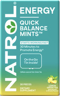 Natrol Quick Balance Mint, energy supplement is easy and convenient for life on the go.(1) In just 30 minutes, these fast-working energy supplements promote concentration and increased energy when you need it.(1) Natrol energy mints provide 35 mg of caffeine per serving, sourced from botanical green tea. This energy support supplement is Non-GMO and sugar-free with a refreshing Lemon Green Tea flavor. Packaged in an on-the-go tin, these energy support mints are ready to go with you anywhere.