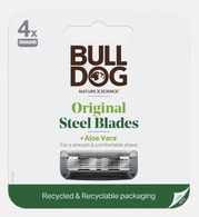 Our Original Steel Blades offer four refill cartridges that fit any of our Bulldog razors. With five tempered steel blades, a lubricating strip with aloe and a precision trimmer and pivoting design, they offer everything you need for a close, comfortable shave.